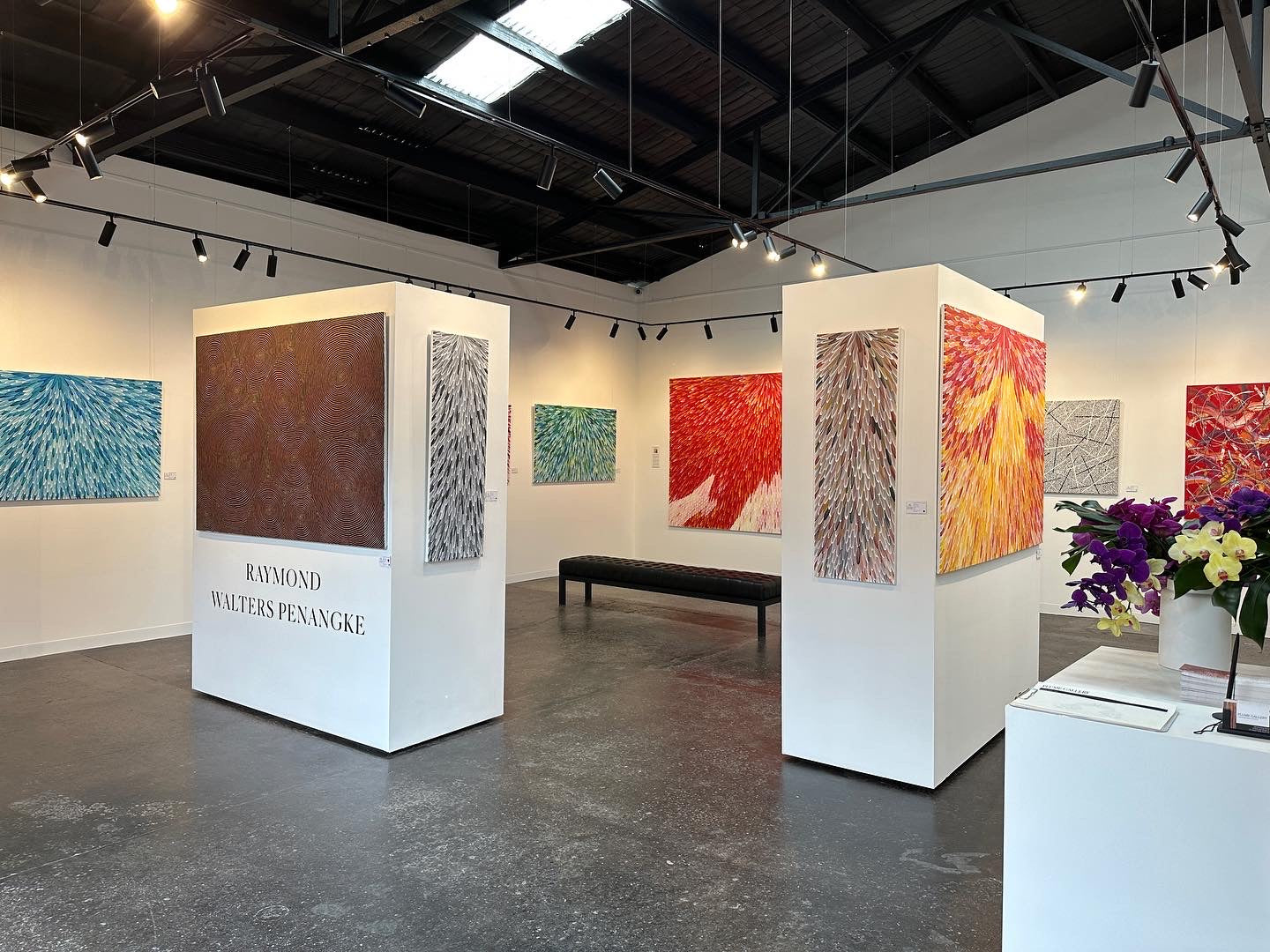 SOLD - RAYMOND WALTERS PENANGKE - Emu Feathers Red/White 150 x 300cm